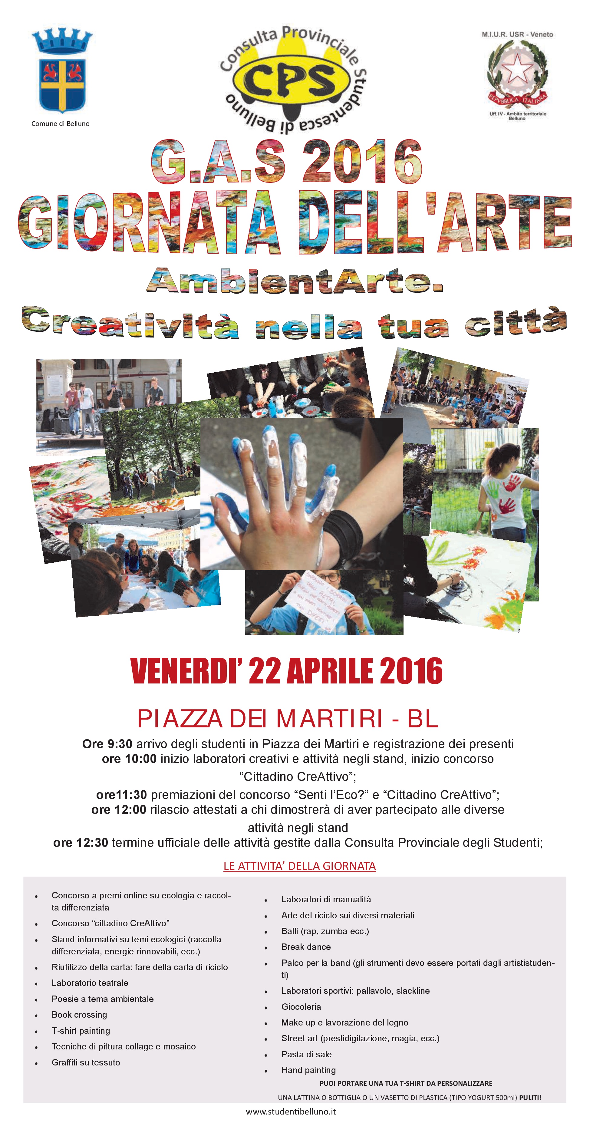 Anche quest'anno I RAGAZZI DELLA CONSULTA organizzano la Giornata dell'arte in Piazza dei Martiri a Belluno
