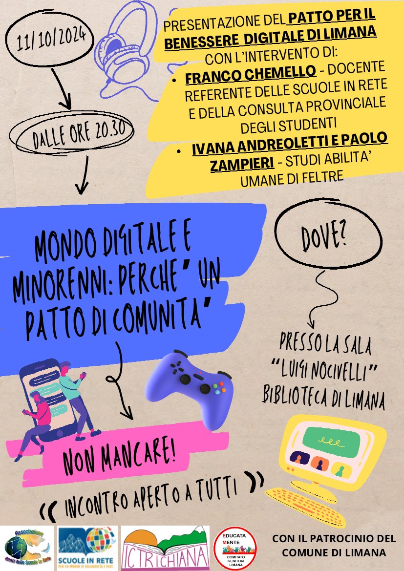Presentazione del patto per il benessere digitale di Limana - 11 ottobre presso la sala Luigi Nocivelli della Biblioteca di Limana, ore 20:30