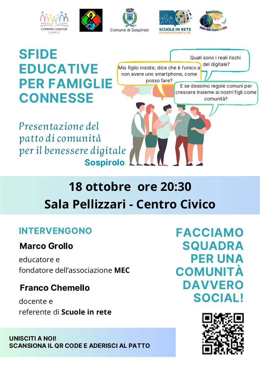Sfide educative per famiglie connesse: presentazione pubblica del Patto di comunità di Sospirolo: 18 ottobre 2024 ore 20:30 presso Sala Pellizzari - Centro Civico