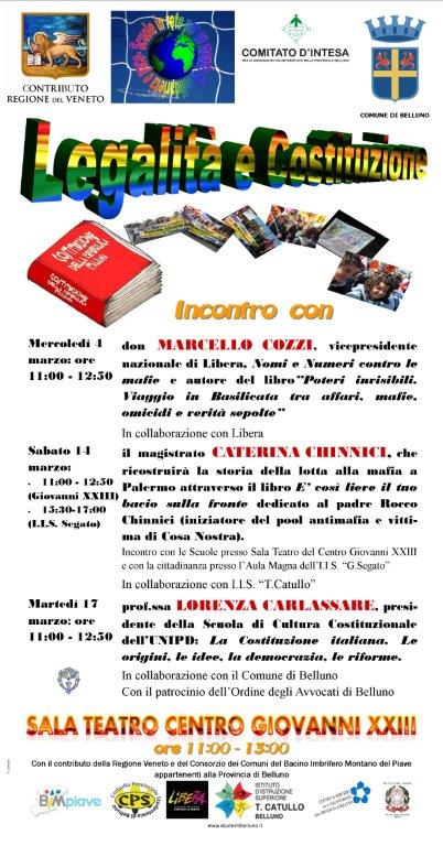 Incontro/dibattito con il magistrato Caterina Chinnici, che ricostruirà la storia della lotta alla mafia a Palermo attraverso il libro E’così lieve il tuo bacio sulla fronte dedicato al padre Rocco Chinnici (vittima di Cosa Nostra e iniziatore del pool antimafia, poi sviluppato da Caponnetto, Falcone e Borsellino). Questo incontro sarà replicato per la comunità cittadina alle ore 15:30 (ATTENZIONE, NON PIU' ALLE 16:30) presso l’Aula Magna dell’I.I.S. “Segato-Brustolon” |
