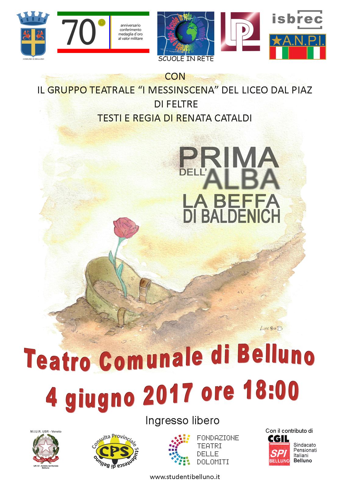 Un episodio eroico di risonanza nazionale risalente al 16 giugno del 1944, quando i partigiani bellunesi con uno stratagemma riuscirono a liberare 70 prigionieri dal carcere di Baldenich. Magistralmente raccontato dal laboratorio teatrale "I Messinscena" del Liceo "G.Dal Piaz di Feltre". Al teatro comunale il 4 giugno alle ore 18:00. VEDI IL VIDEO DELLO SPETTACOLO