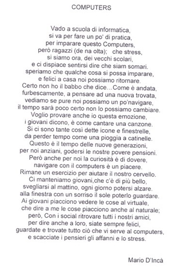 Le nuove poesie 2018 del nostro corsista Mario D'Incà: