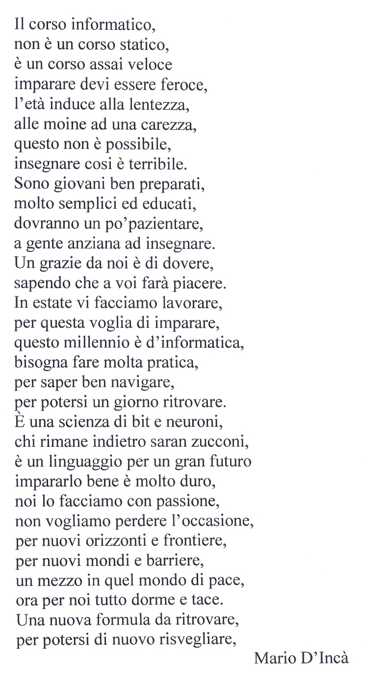 VEDI LE ALTRE POESIE INFORMATICHE DI MARIO D'INCA'