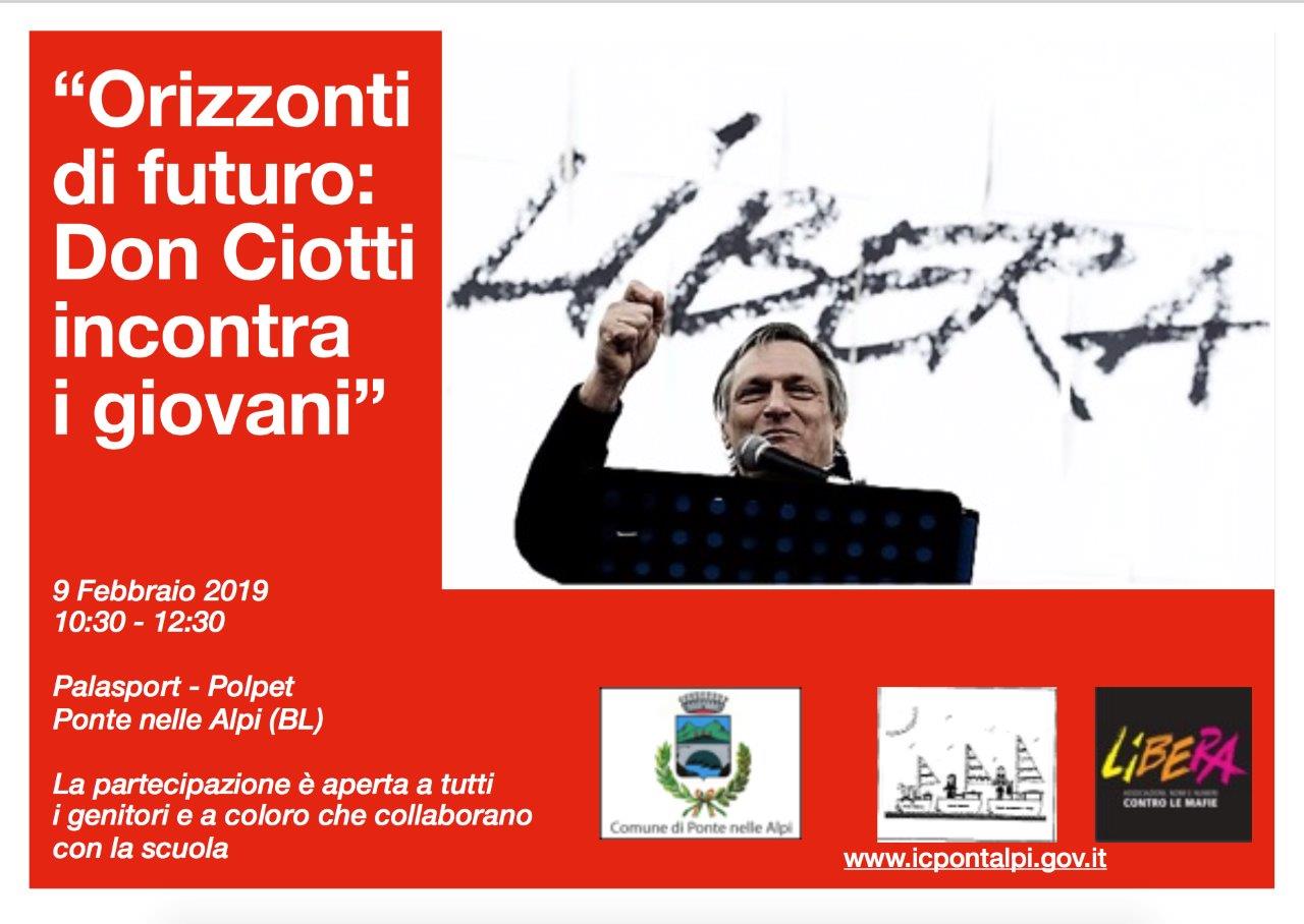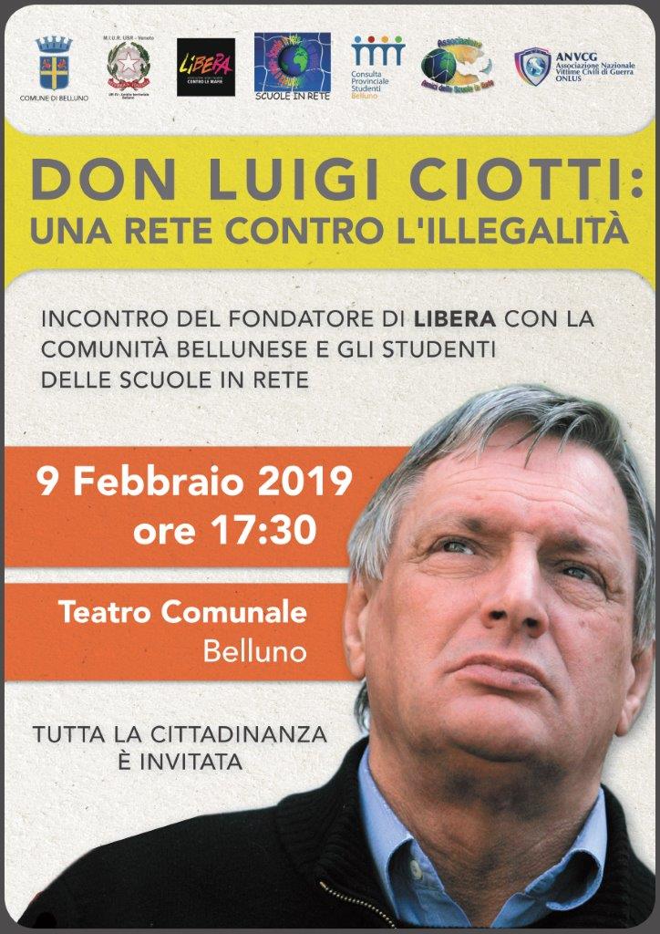 - Sabato 9 febbraio ore 17:30-19:30 presso il teatro Comunale don Luigi Ciotti incontrerà gli studenti delle Scuole in Rete della Secondaria di II Grado, della Consulta Provinciale e la cittadinanza tutta.