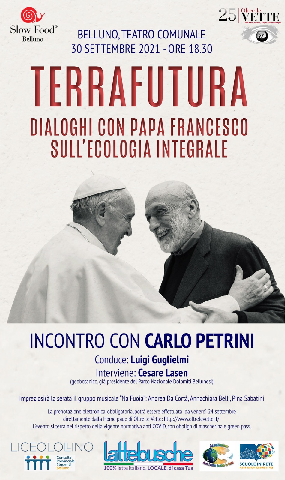 Gli studenti delle Scuole in Rete e della Consulta si confrontano con Carlo Petrini presidente e fondatore di Slow Food Italia al teatro Comunale di Belluno giovedì 30/9/2021 ore 18:30 all'interno di Oltre le Vette