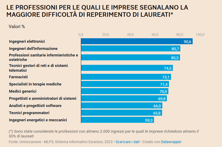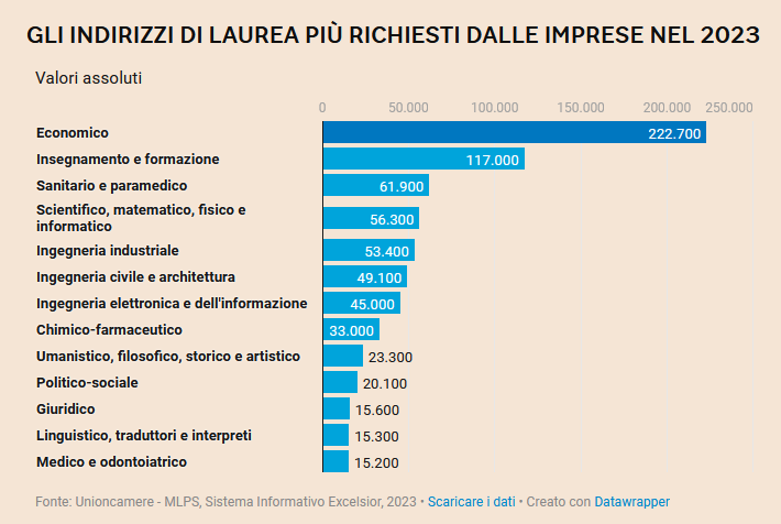GLI INDIRIZZI DI LAUREA PIÙ RICHIESTI DALLE IMPRESE NEL 2023