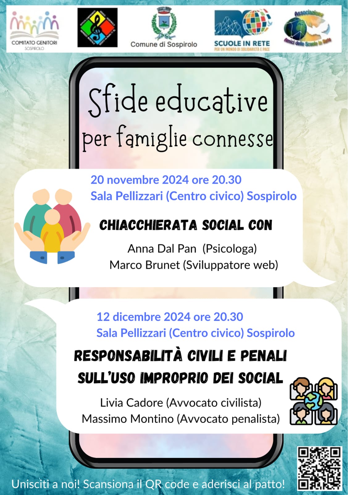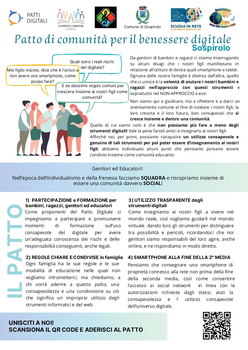 Sfide educative per famiglie connesse: presentazione pubblica del Patto di comunità di Sospirolo: 18 ottobre 2024 ore 20:30 presso Sala Pellizzari - Centro Civico